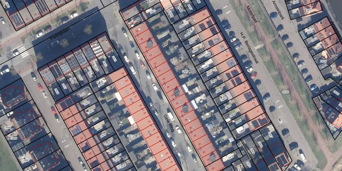 Gele Ring 46 is gelegen op kadastraal perceel ASD01N2460. Deze kadastrale aanduiding is uniek en wordt gebruikt door het Kadaster om eigendomsrechten en andere zakelijke rechten vast te leggen. Het perceel maakt onderdeel uit van de kadastrale gemeente Assendelft.