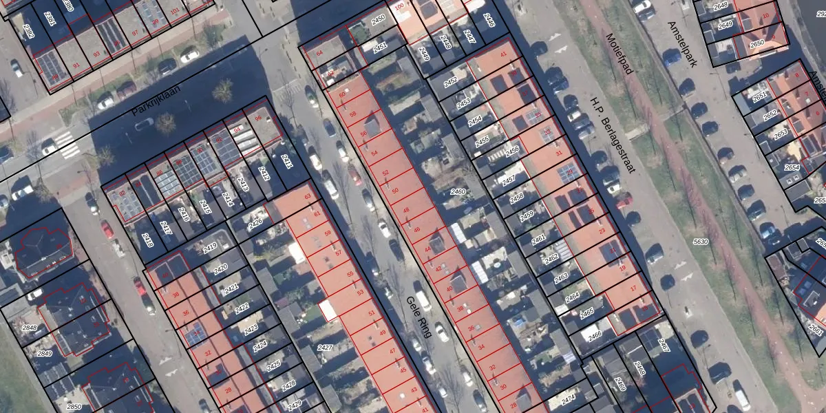 Het perceel waarop Gele Ring 48 staat heeft een oppervlakte van 2137 m². Dit is een zeer groot perceel. De perceeloppervlakte wordt geregistreerd door het Kadaster. Gedetailleerde informatie over de maten van dit perceel kunt u vinden in het rapport Kadastrale kaart met maatvoering van Gele Ring 48.