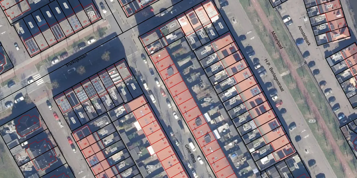 Het perceel waarop Gele Ring 52 staat heeft een oppervlakte van 2137 m². Dit is een zeer groot perceel. De perceeloppervlakte wordt geregistreerd door het Kadaster. Gedetailleerde informatie over de maten van dit perceel kunt u vinden in het rapport Kadastrale kaart met maatvoering van Gele Ring 52.