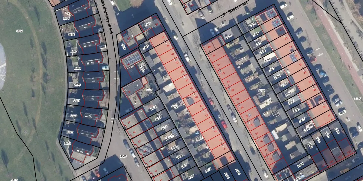 Het perceel waarop het adres ligt is ASD01-N-2373. De afkorting 'ASD01' staat voor kadastrale gemeente Assendelft. Het perceel is 1413 m² groot. Dat is kleiner dan de gemiddelde perceeloppervlakte in Assendelft, dat op 3035,81 m² ligt. De grootste perceeloppervlakte in de kadastrale gemeente is 40,2 ha. De kleinste oppervlakte bedraagt 0 m². Er zijn 13 adressen aanwezig op het perceel. De huidige grenzen van het perceel zijn digitaal in de Basisregistratie Kadaster (BRK) geregistreerd op 02-05-2006.