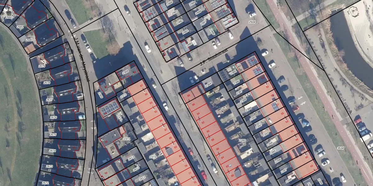 Gebruik de zoekbalk of klik op een perceel voor informatie over de adressen binnen dit perceel.