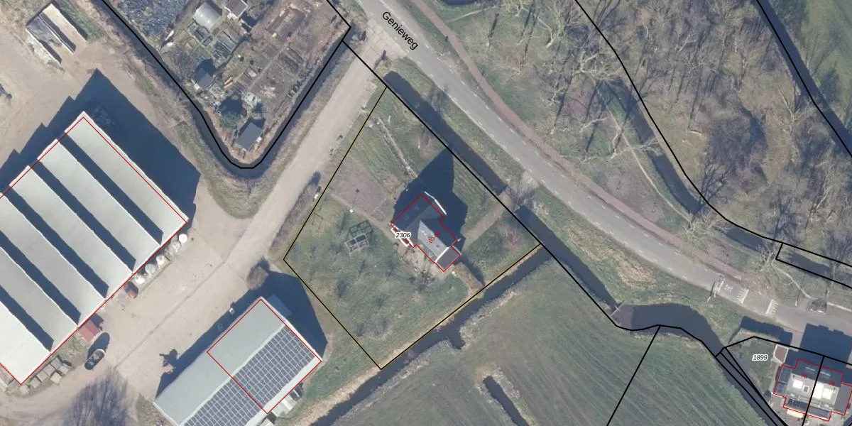 Genieweg 82 is gelegen op kadastraal perceel ASD01O2306. Deze kadastrale aanduiding is uniek en wordt gebruikt door het Kadaster om eigendomsrechten en andere zakelijke rechten vast te leggen. Het perceel maakt onderdeel uit van de kadastrale gemeente Assendelft.
