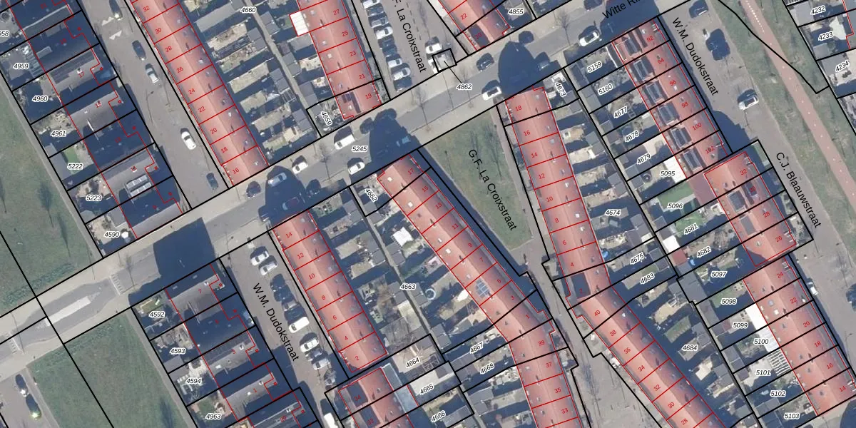 Het perceel waarop G.F. La Croixstraat 13 staat heeft een oppervlakte van 1710 m². Dit is een zeer groot perceel. De perceeloppervlakte wordt geregistreerd door het Kadaster. Gedetailleerde informatie over de maten van dit perceel kunt u vinden in het rapport Kadastrale kaart met maatvoering van G.F. La Croixstraat 13.