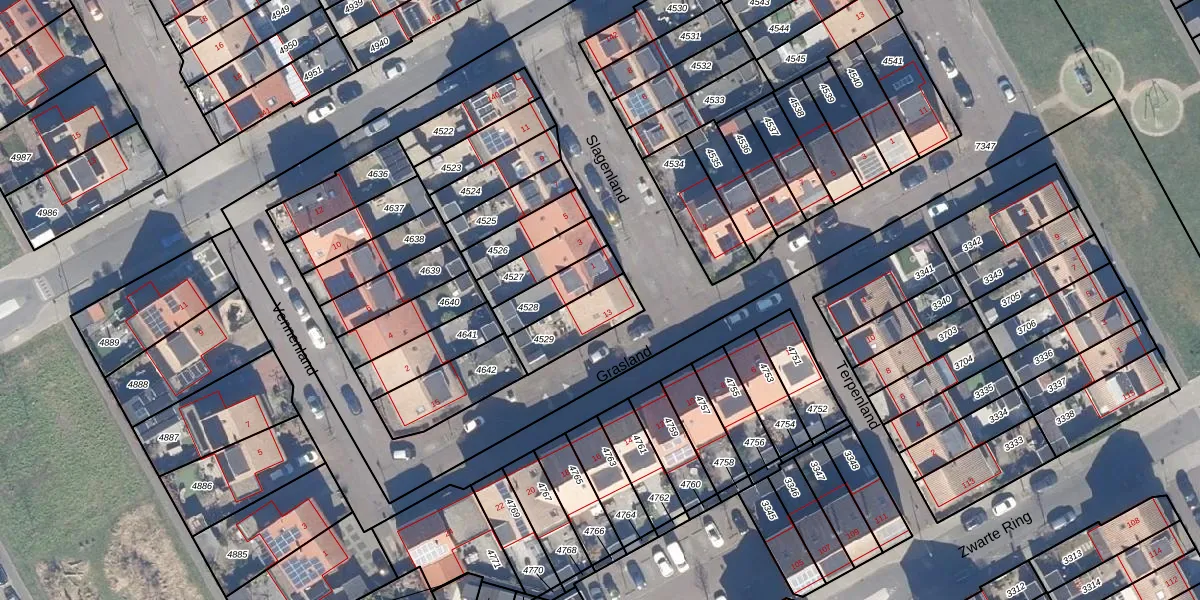 Het perceel waarop Grasland 13 staat heeft een oppervlakte van 158 m². Dit is een middelgroot perceel. De perceeloppervlakte wordt geregistreerd door het Kadaster. Gedetailleerde informatie over de maten van dit perceel kunt u vinden in het rapport Kadastrale kaart met maatvoering van Grasland 13.