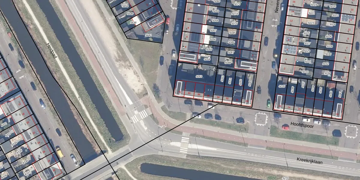 Het perceel waarop Hoofdspoor 42 staat heeft een oppervlakte van 436 m². Dit is een groot perceel. De perceeloppervlakte wordt geregistreerd door het Kadaster. Gedetailleerde informatie over de maten van dit perceel kunt u vinden in het rapport Kadastrale kaart met maatvoering van Hoofdspoor 42.