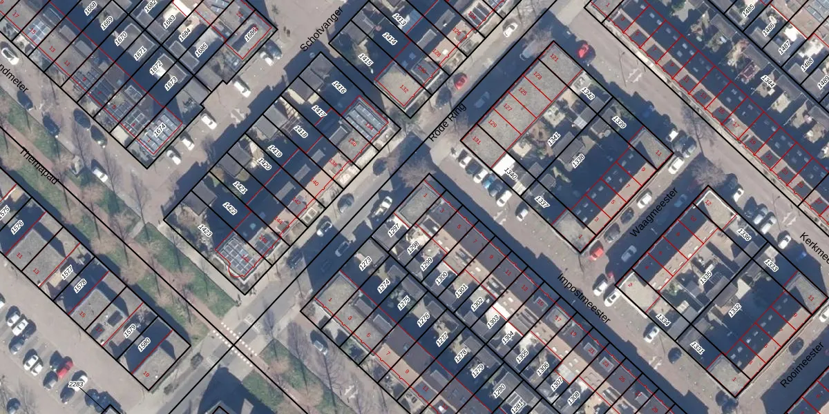 Het perceel waarop Impostmeester 1 staat heeft een oppervlakte van 119 m². Dit is een middelgroot perceel. De perceeloppervlakte wordt geregistreerd door het Kadaster. Gedetailleerde informatie over de maten van dit perceel kunt u vinden in het rapport Kadastrale kaart met maatvoering van Impostmeester 1.