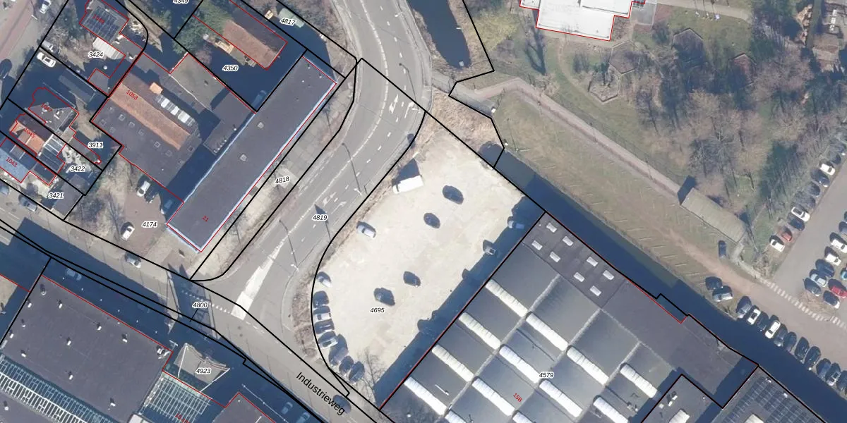 Het perceel waarop Industrieweg 17-G staat heeft een oppervlakte van 1990 m². Dit is een zeer groot perceel. De perceeloppervlakte wordt geregistreerd door het Kadaster. Gedetailleerde informatie over de maten van dit perceel kunt u vinden in het rapport Kadastrale kaart met maatvoering van Industrieweg 17-G.