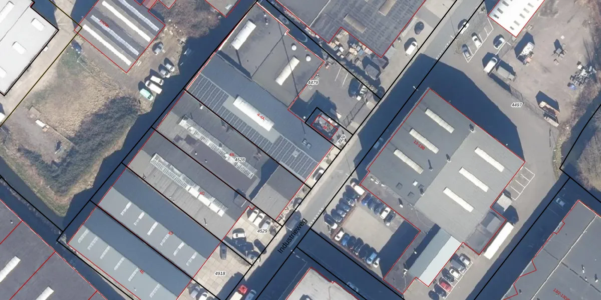 Het perceel waarop Industrieweg 4-A staat heeft een oppervlakte van 1975 m². Dit is een zeer groot perceel. De perceeloppervlakte wordt geregistreerd door het Kadaster. Gedetailleerde informatie over de maten van dit perceel kunt u vinden in het rapport Kadastrale kaart met maatvoering van Industrieweg 4-A.