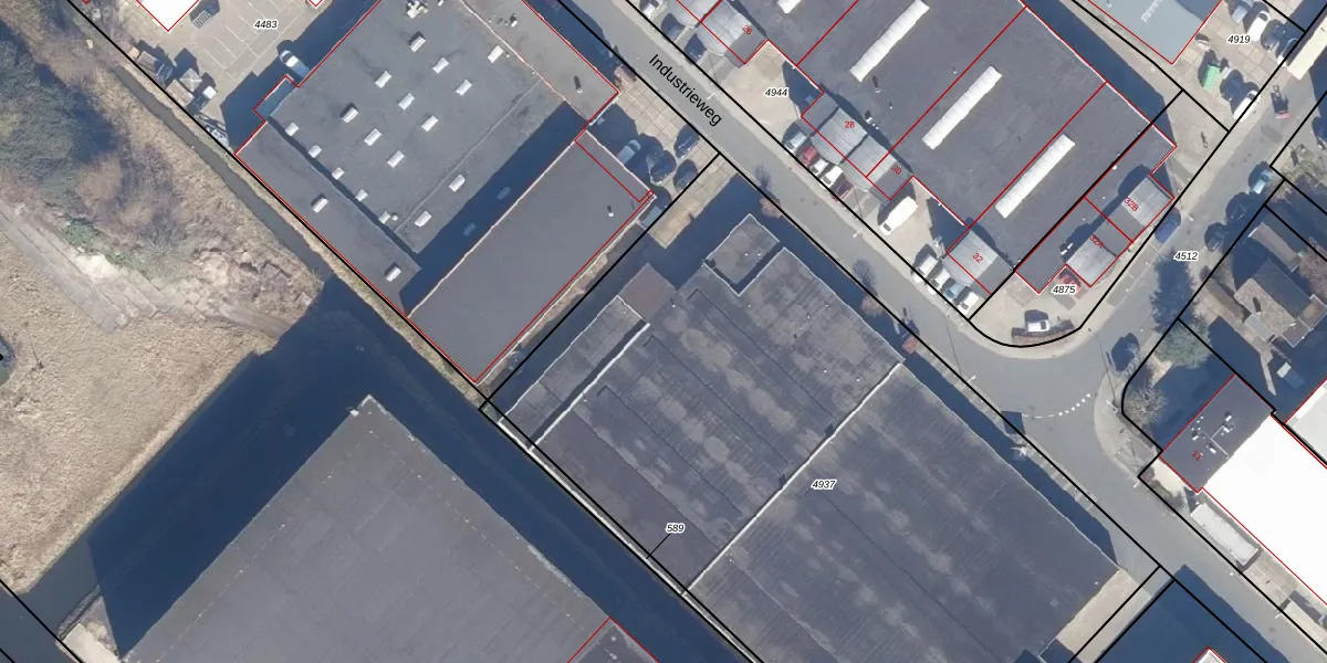 Het perceel waarop Industrieweg 7-B-5 staat heeft een oppervlakte van 4722 m². Dit is een zeer groot perceel. De perceeloppervlakte wordt geregistreerd door het Kadaster. Gedetailleerde informatie over de maten van dit perceel kunt u vinden in het rapport Kadastrale kaart met maatvoering van Industrieweg 7-B-5.