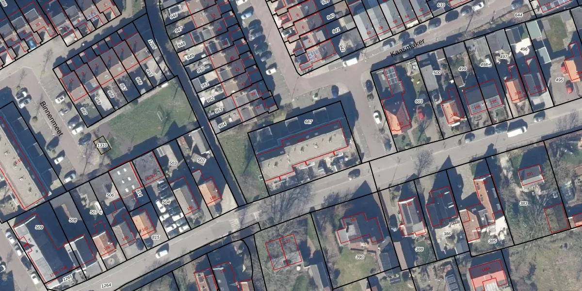 Het perceel waarop Kaasmaker 23 staat heeft een oppervlakte van 773 m². Dit is een groot perceel. De perceeloppervlakte wordt geregistreerd door het Kadaster. Gedetailleerde informatie over de maten van dit perceel kunt u vinden in het rapport Kadastrale kaart met maatvoering van Kaasmaker 23.