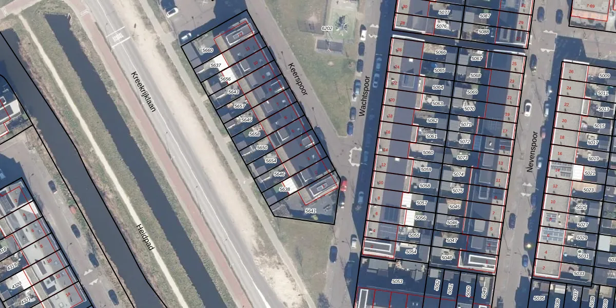 Gebruik de zoekbalk of klik op een perceel voor informatie over de adressen binnen dit perceel.