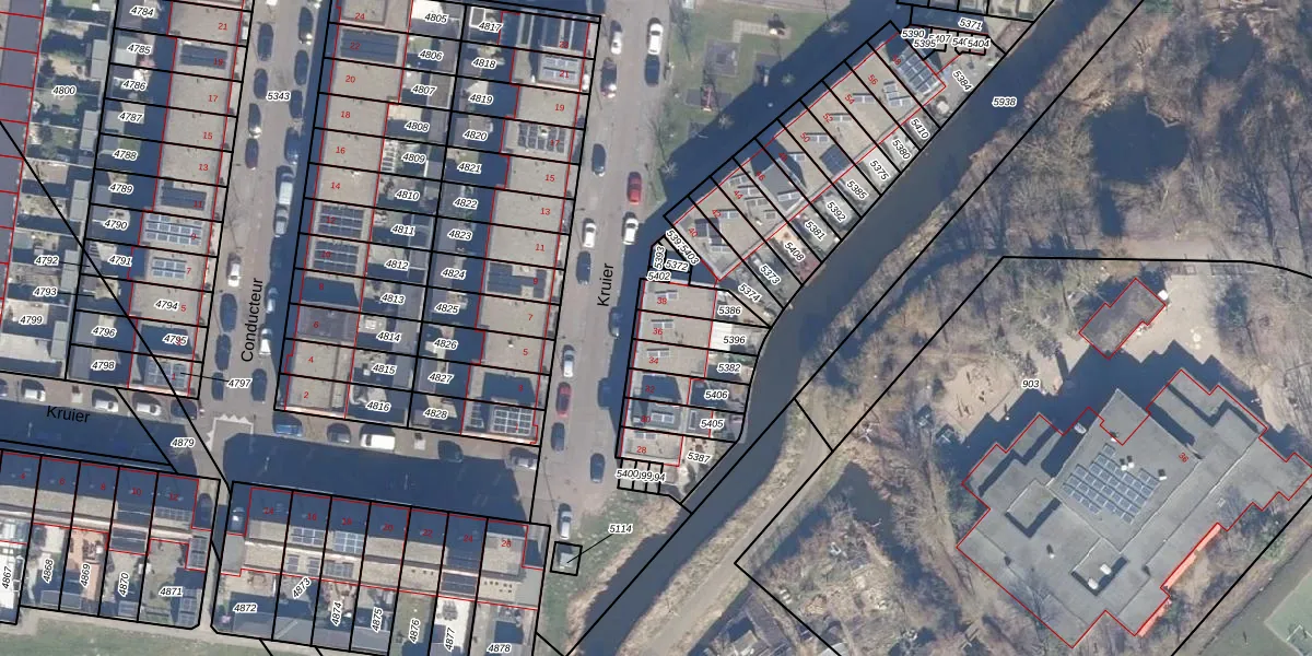 Het perceel waarop Kruier 36 staat heeft een oppervlakte van 90 m². Dit is een klein perceel. De perceeloppervlakte wordt geregistreerd door het Kadaster. Gedetailleerde informatie over de maten van dit perceel kunt u vinden in het rapport Kadastrale kaart met maatvoering van Kruier 36.