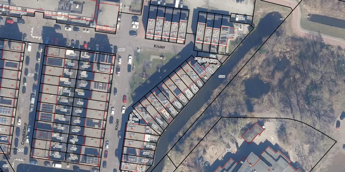 Het perceel waarop Kruier 50 staat heeft een oppervlakte van 88 m². Dit is een klein perceel. De perceeloppervlakte wordt geregistreerd door het Kadaster. Gedetailleerde informatie over de maten van dit perceel kunt u vinden in het rapport Kadastrale kaart met maatvoering van Kruier 50.