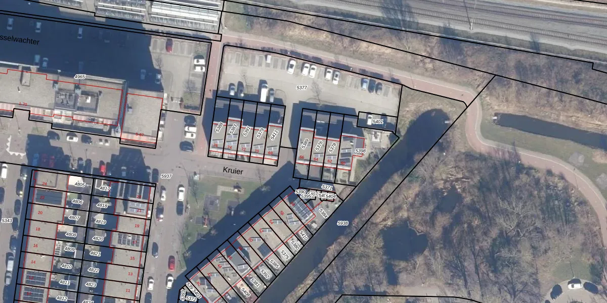 Het perceel waarop Kruier 66 staat heeft een oppervlakte van 110 m². Dit is een middelgroot perceel. De perceeloppervlakte wordt geregistreerd door het Kadaster. Gedetailleerde informatie over de maten van dit perceel kunt u vinden in het rapport Kadastrale kaart met maatvoering van Kruier 66.