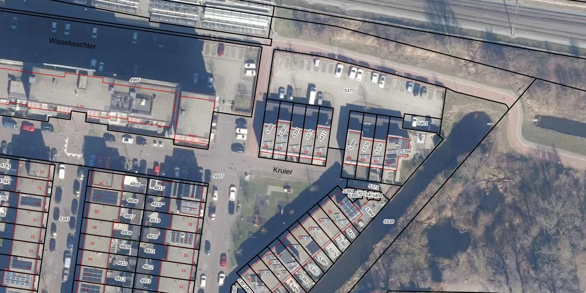 Het perceel waarop Kruier 72 staat heeft een oppervlakte van 90 m². Dit is een klein perceel. De perceeloppervlakte wordt geregistreerd door het Kadaster. Gedetailleerde informatie over de maten van dit perceel kunt u vinden in het rapport Kadastrale kaart met maatvoering van Kruier 72.