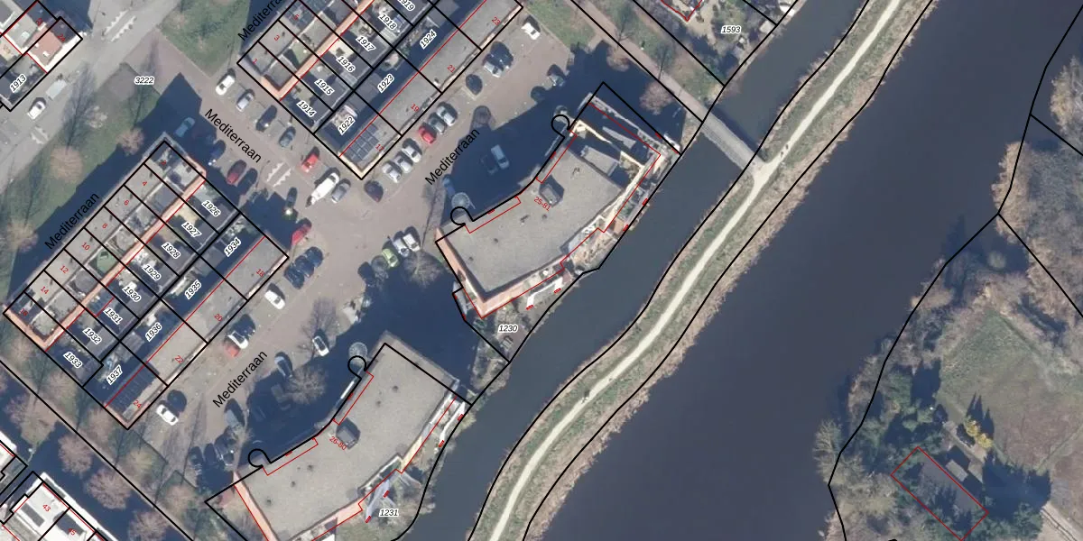 Het perceel waarop Mediterraan 67 staat heeft een oppervlakte van 1001 m². Dit is een zeer groot perceel. De perceeloppervlakte wordt geregistreerd door het Kadaster. Gedetailleerde informatie over de maten van dit perceel kunt u vinden in het rapport Kadastrale kaart met maatvoering van Mediterraan 67.