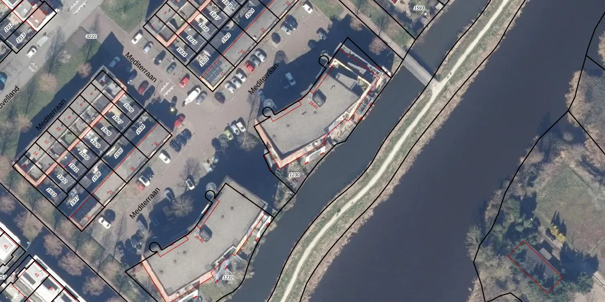 Het perceel waarop Mediterraan 73 staat heeft een oppervlakte van 1001 m². Dit is een zeer groot perceel. De perceeloppervlakte wordt geregistreerd door het Kadaster. Gedetailleerde informatie over de maten van dit perceel kunt u vinden in het rapport Kadastrale kaart met maatvoering van Mediterraan 73.