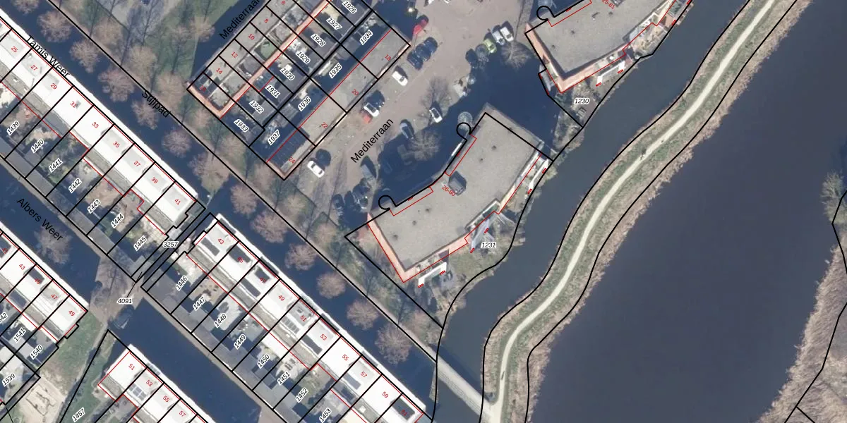 Het perceel waarop Mediterraan 78 staat heeft een oppervlakte van 1099 m². Dit is een zeer groot perceel. De perceeloppervlakte wordt geregistreerd door het Kadaster. Gedetailleerde informatie over de maten van dit perceel kunt u vinden in het rapport Kadastrale kaart met maatvoering van Mediterraan 78.