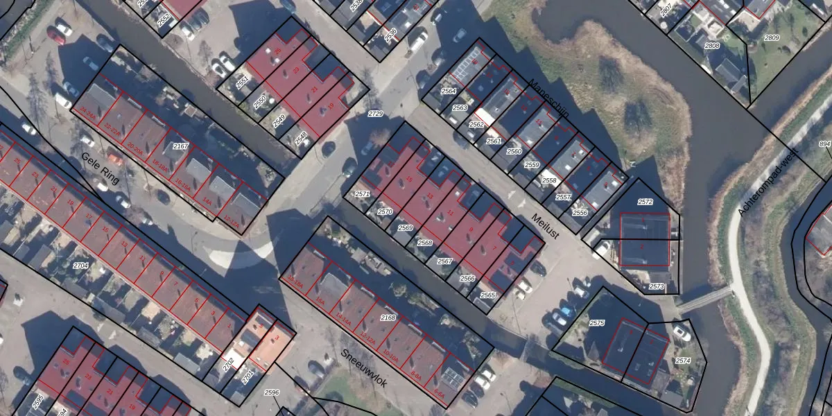 Gebruik de zoekbalk of klik op een perceel voor informatie over de adressen binnen dit perceel.