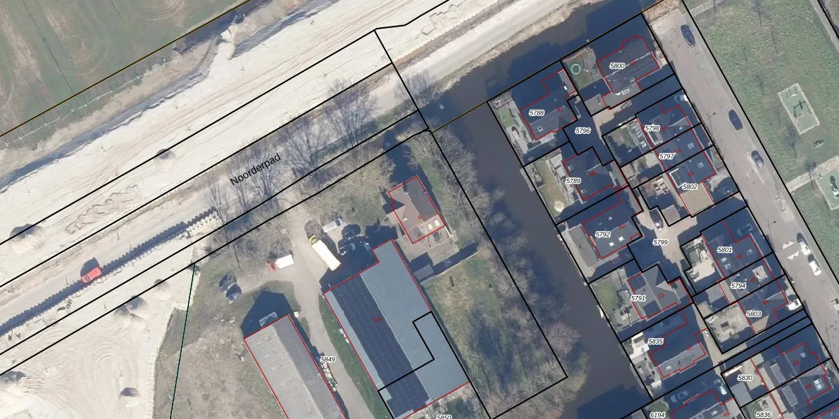 Noorderweg 6 is gelegen op kadastraal perceel ASD01N5849. Deze kadastrale aanduiding is uniek en wordt gebruikt door het Kadaster om eigendomsrechten en andere zakelijke rechten vast te leggen. Het perceel maakt onderdeel uit van de kadastrale gemeente Assendelft.