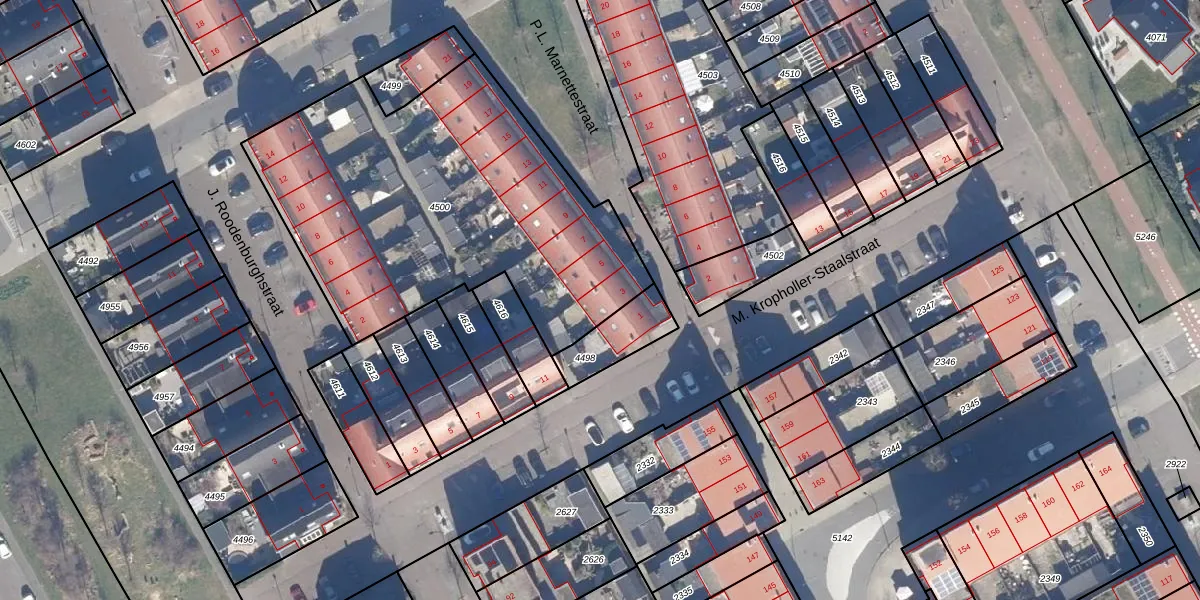 Het perceel waarop P.L. Marnettestraat 3 staat heeft een oppervlakte van 1911 m². Dit is een zeer groot perceel. De perceeloppervlakte wordt geregistreerd door het Kadaster. Gedetailleerde informatie over de maten van dit perceel kunt u vinden in het rapport Kadastrale kaart met maatvoering van P.L. Marnettestraat 3.
