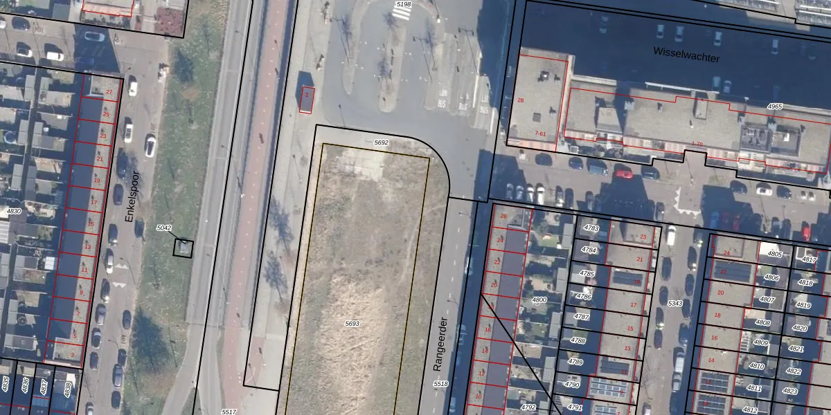 Het perceel waarop Rangeerder 33 staat heeft een oppervlakte van 2171 m². Dit is een zeer groot perceel. De perceeloppervlakte wordt geregistreerd door het Kadaster. Gedetailleerde informatie over de maten van dit perceel kunt u vinden in het rapport Kadastrale kaart met maatvoering van Rangeerder 33.