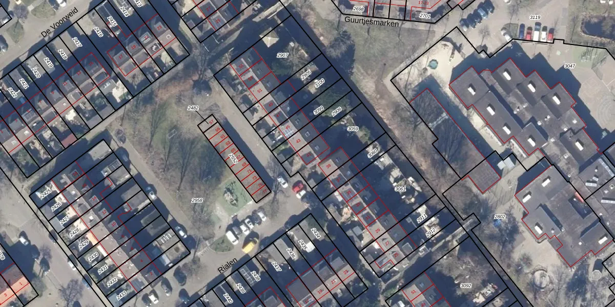 Het perceel waarop Rialen 41 staat heeft een oppervlakte van 400 m². Dit is een groot perceel. De perceeloppervlakte wordt geregistreerd door het Kadaster. Gedetailleerde informatie over de maten van dit perceel kunt u vinden in het rapport Kadastrale kaart met maatvoering van Rialen 41.
