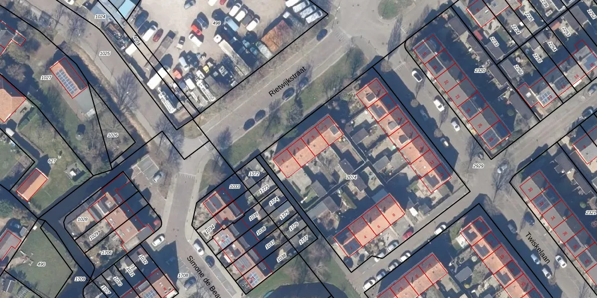 Het perceel waarop Rietwijkstraat 3 staat heeft een oppervlakte van 2490 m². Dit is een zeer groot perceel. De perceeloppervlakte wordt geregistreerd door het Kadaster. Gedetailleerde informatie over de maten van dit perceel kunt u vinden in het rapport Kadastrale kaart met maatvoering van Rietwijkstraat 3.