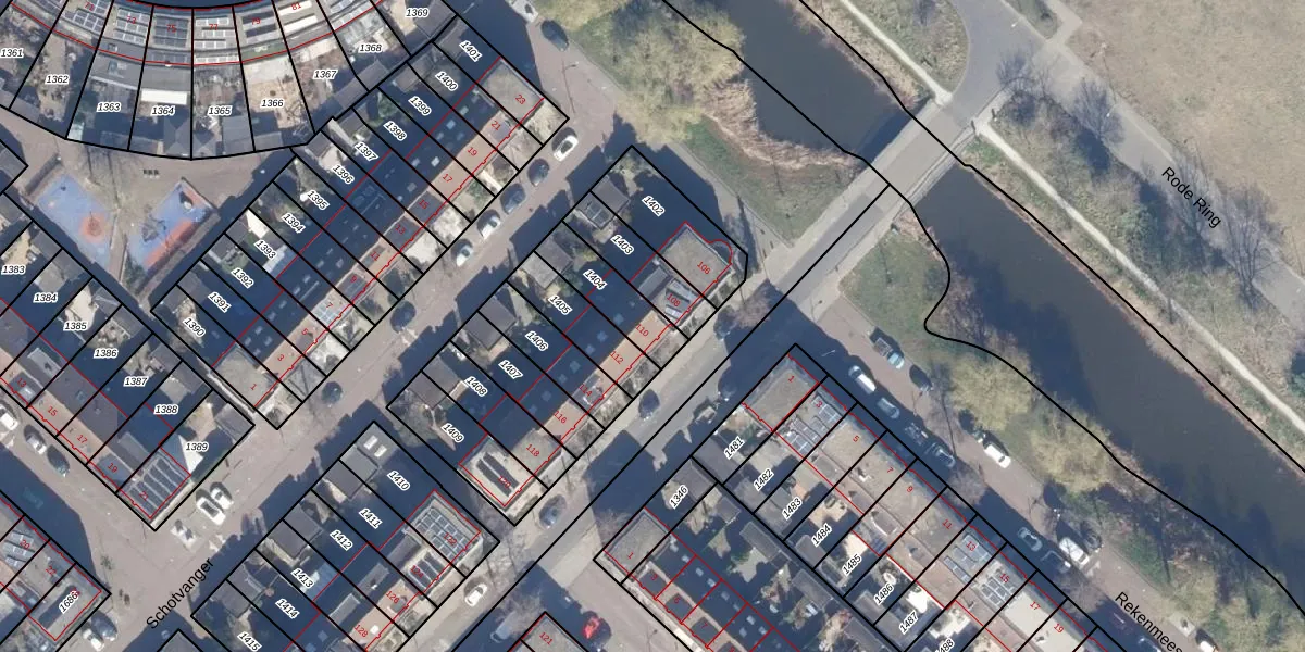 Het perceel waarop Rode Ring 110 staat heeft een oppervlakte van 169 m². Dit is een middelgroot perceel. De perceeloppervlakte wordt geregistreerd door het Kadaster. Gedetailleerde informatie over de maten van dit perceel kunt u vinden in het rapport Kadastrale kaart met maatvoering van Rode Ring 110.