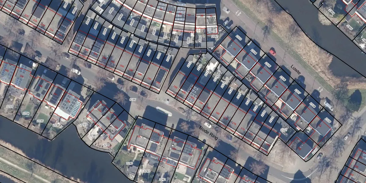 Het perceel waarop Rode Ring 188 staat heeft een oppervlakte van 165 m². Dit is een middelgroot perceel. De perceeloppervlakte wordt geregistreerd door het Kadaster. Gedetailleerde informatie over de maten van dit perceel kunt u vinden in het rapport Kadastrale kaart met maatvoering van Rode Ring 188.
