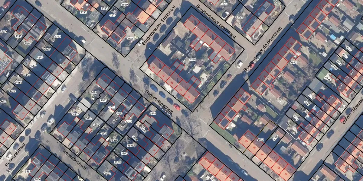 Het perceel waarop Saenredamstraat 27 staat heeft een oppervlakte van 1704 m². Dit is een zeer groot perceel. De perceeloppervlakte wordt geregistreerd door het Kadaster. Gedetailleerde informatie over de maten van dit perceel kunt u vinden in het rapport Kadastrale kaart met maatvoering van Saenredamstraat 27.