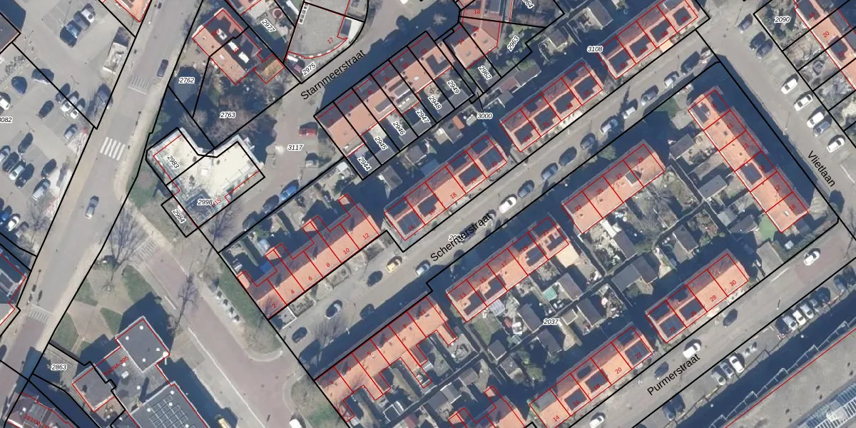 Het perceel waarop Schermerstraat 16 staat heeft een oppervlakte van 3210 m². Dit is een zeer groot perceel. De perceeloppervlakte wordt geregistreerd door het Kadaster. Gedetailleerde informatie over de maten van dit perceel kunt u vinden in het rapport Kadastrale kaart met maatvoering van Schermerstraat 16.