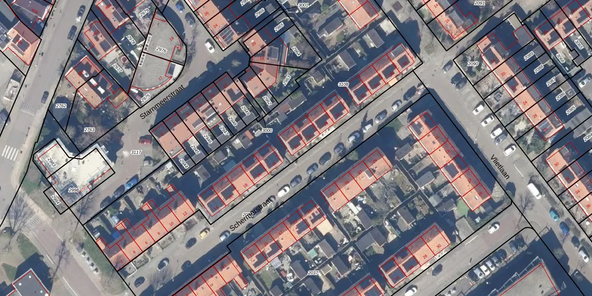 Het perceel waarop Schermerstraat 24 staat heeft een oppervlakte van 3210 m². Dit is een zeer groot perceel. De perceeloppervlakte wordt geregistreerd door het Kadaster. Gedetailleerde informatie over de maten van dit perceel kunt u vinden in het rapport Kadastrale kaart met maatvoering van Schermerstraat 24.