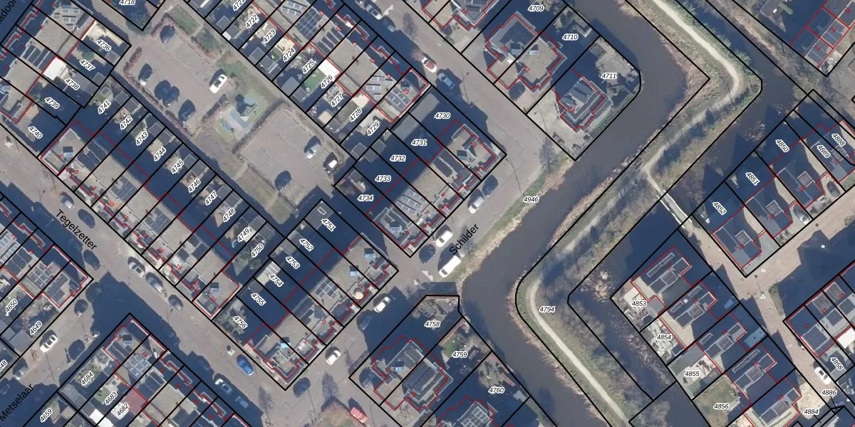 Het perceel waarop Schilder 7 staat heeft een oppervlakte van 147 m². Dit is een middelgroot perceel. De perceeloppervlakte wordt geregistreerd door het Kadaster. Gedetailleerde informatie over de maten van dit perceel kunt u vinden in het rapport Kadastrale kaart met maatvoering van Schilder 7.