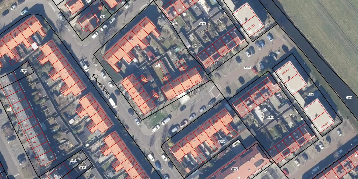 Het perceel waarop Smeeke Ven 239 staat heeft een oppervlakte van 2220 m². Dit is een zeer groot perceel. De perceeloppervlakte wordt geregistreerd door het Kadaster. Gedetailleerde informatie over de maten van dit perceel kunt u vinden in het rapport Kadastrale kaart met maatvoering van Smeeke Ven 239.