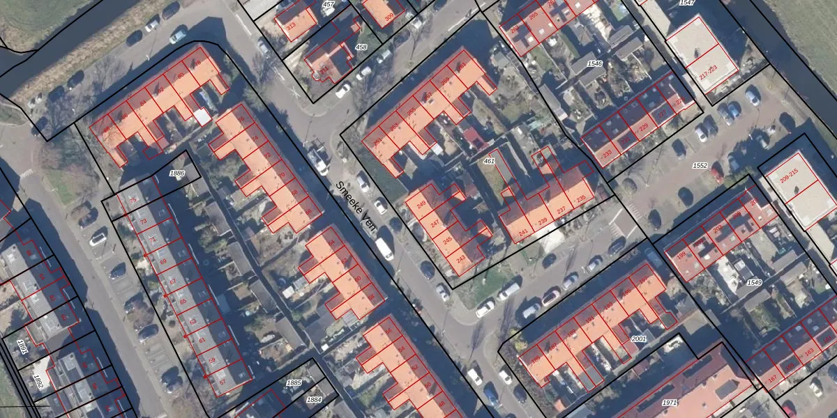 Het perceel waarop Smeeke Ven 249 staat heeft een oppervlakte van 2220 m². Dit is een zeer groot perceel. De perceeloppervlakte wordt geregistreerd door het Kadaster. Gedetailleerde informatie over de maten van dit perceel kunt u vinden in het rapport Kadastrale kaart met maatvoering van Smeeke Ven 249.