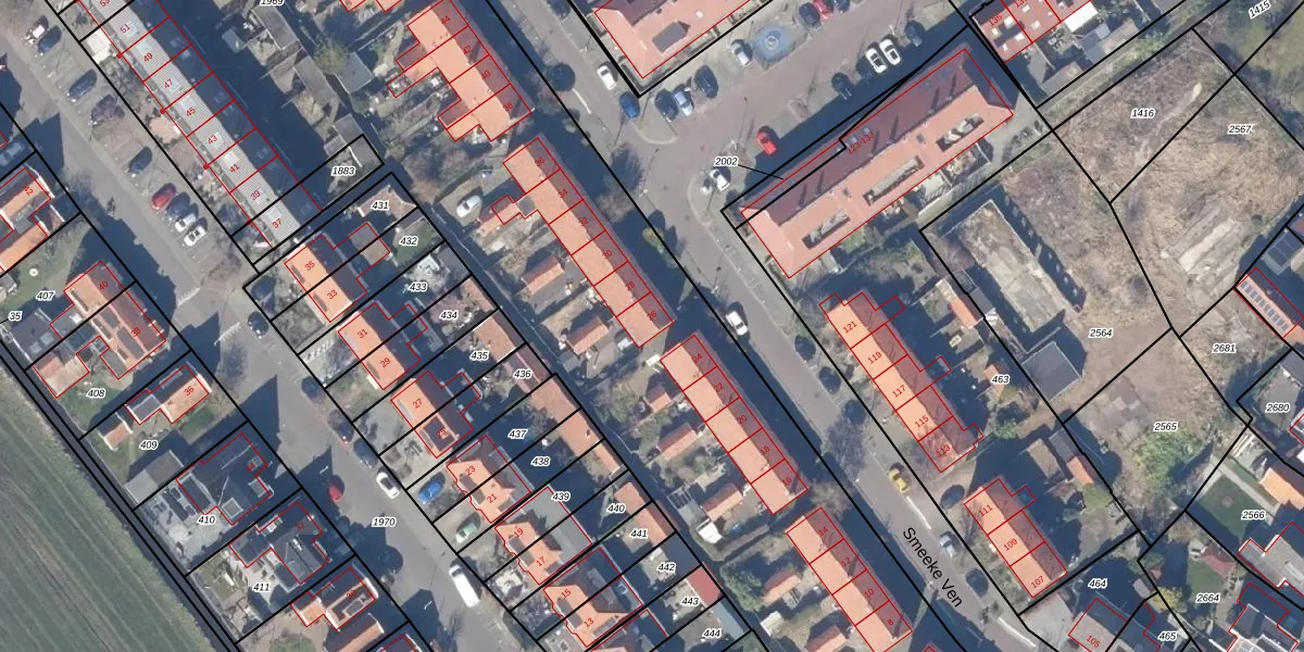 Het perceel waarop Smeeke Ven 26 staat heeft een oppervlakte van 9555 m². Dit is een zeer groot perceel. De perceeloppervlakte wordt geregistreerd door het Kadaster. Gedetailleerde informatie over de maten van dit perceel kunt u vinden in het rapport Kadastrale kaart met maatvoering van Smeeke Ven 26.