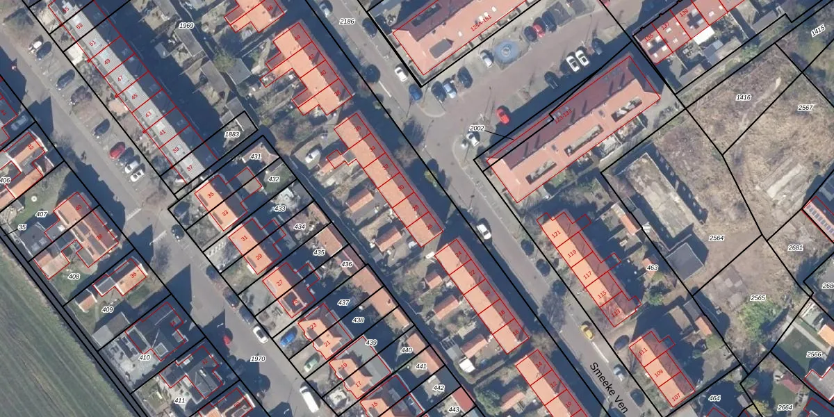 Het perceel waarop Smeeke Ven 28 staat heeft een oppervlakte van 9555 m². Dit is een zeer groot perceel. De perceeloppervlakte wordt geregistreerd door het Kadaster. Gedetailleerde informatie over de maten van dit perceel kunt u vinden in het rapport Kadastrale kaart met maatvoering van Smeeke Ven 28.