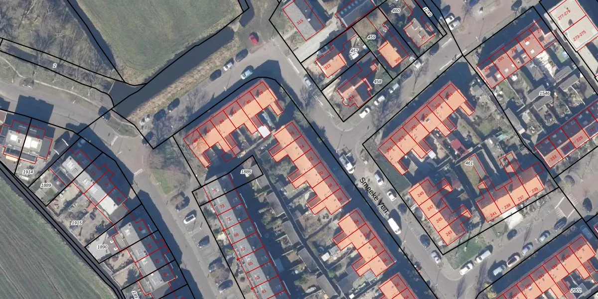 Het perceel waarop Smeeke Ven 74 staat heeft een oppervlakte van 9555 m². Dit is een zeer groot perceel. De perceeloppervlakte wordt geregistreerd door het Kadaster. Gedetailleerde informatie over de maten van dit perceel kunt u vinden in het rapport Kadastrale kaart met maatvoering van Smeeke Ven 74.