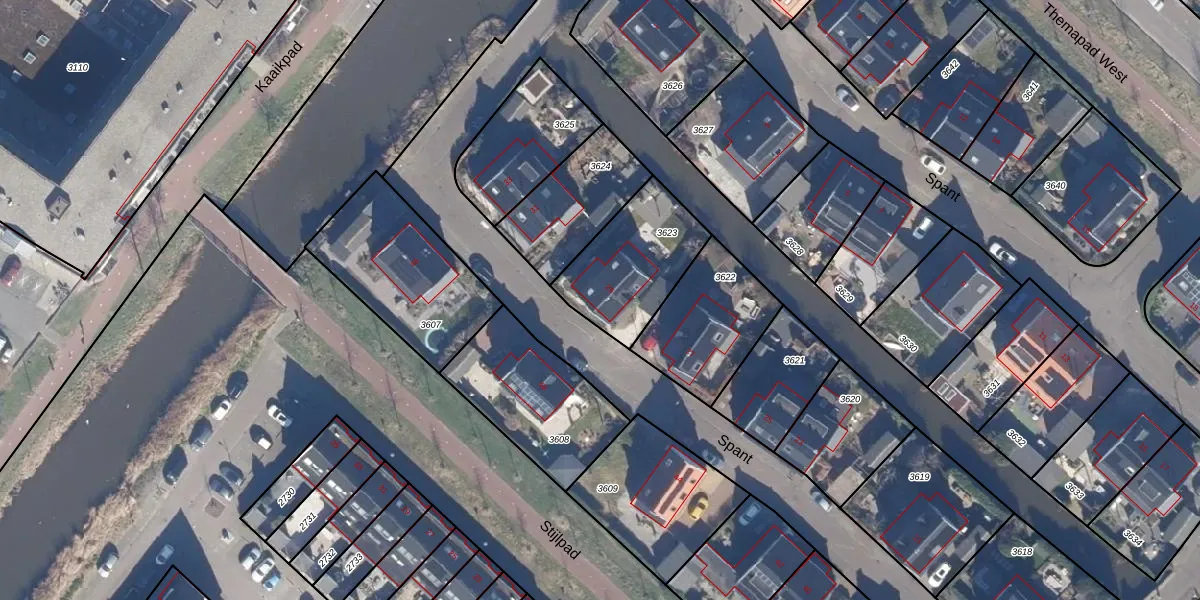 Het perceel waarop Spant 29 staat heeft een oppervlakte van 381 m². Dit is een groot perceel. De perceeloppervlakte wordt geregistreerd door het Kadaster. Gedetailleerde informatie over de maten van dit perceel kunt u vinden in het rapport Kadastrale kaart met maatvoering van Spant 29.
