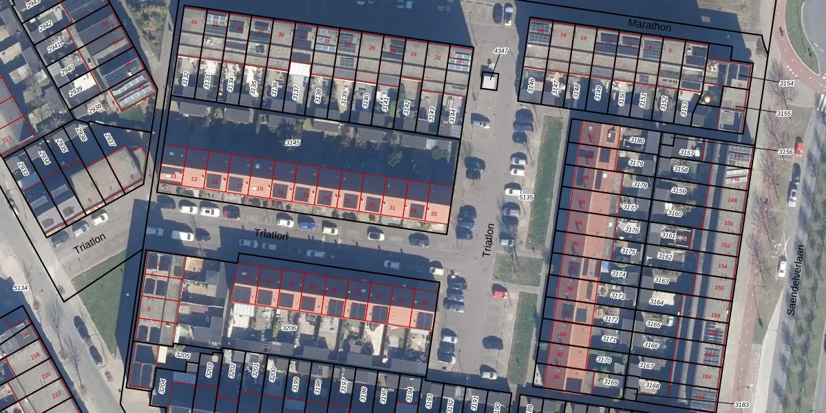 Het perceel waarop Triatlon 33 staat heeft een oppervlakte van 1657 m². Dit is een zeer groot perceel. De perceeloppervlakte wordt geregistreerd door het Kadaster. Gedetailleerde informatie over de maten van dit perceel kunt u vinden in het rapport Kadastrale kaart met maatvoering van Triatlon 33.