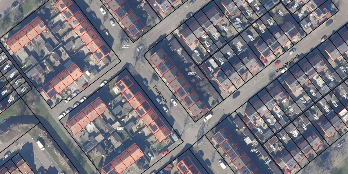 Het perceel waarop Twiskelaan 36 staat heeft een oppervlakte van 1021 m². Dit is een zeer groot perceel. De perceeloppervlakte wordt geregistreerd door het Kadaster. Gedetailleerde informatie over de maten van dit perceel kunt u vinden in het rapport Kadastrale kaart met maatvoering van Twiskelaan 36.