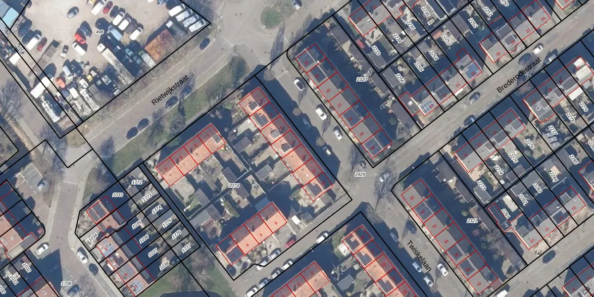 Het perceel waarop Twiskelaan 9 staat heeft een oppervlakte van 2490 m². Dit is een zeer groot perceel. De perceeloppervlakte wordt geregistreerd door het Kadaster. Gedetailleerde informatie over de maten van dit perceel kunt u vinden in het rapport Kadastrale kaart met maatvoering van Twiskelaan 9.