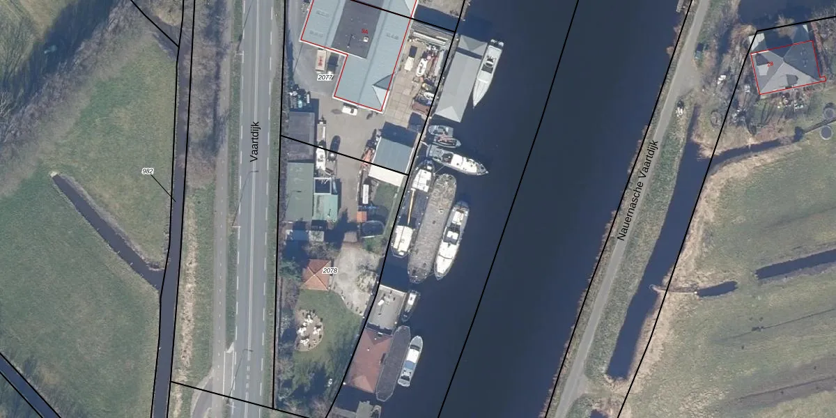 Het perceel waarop Vaartdijk 9-c-rood staat heeft een oppervlakte van 1,8 ha. Dit is een zeer groot perceel. De perceeloppervlakte wordt geregistreerd door het Kadaster. Gedetailleerde informatie over de maten van dit perceel kunt u vinden in het rapport Kadastrale kaart met maatvoering van Vaartdijk 9-c-rood.