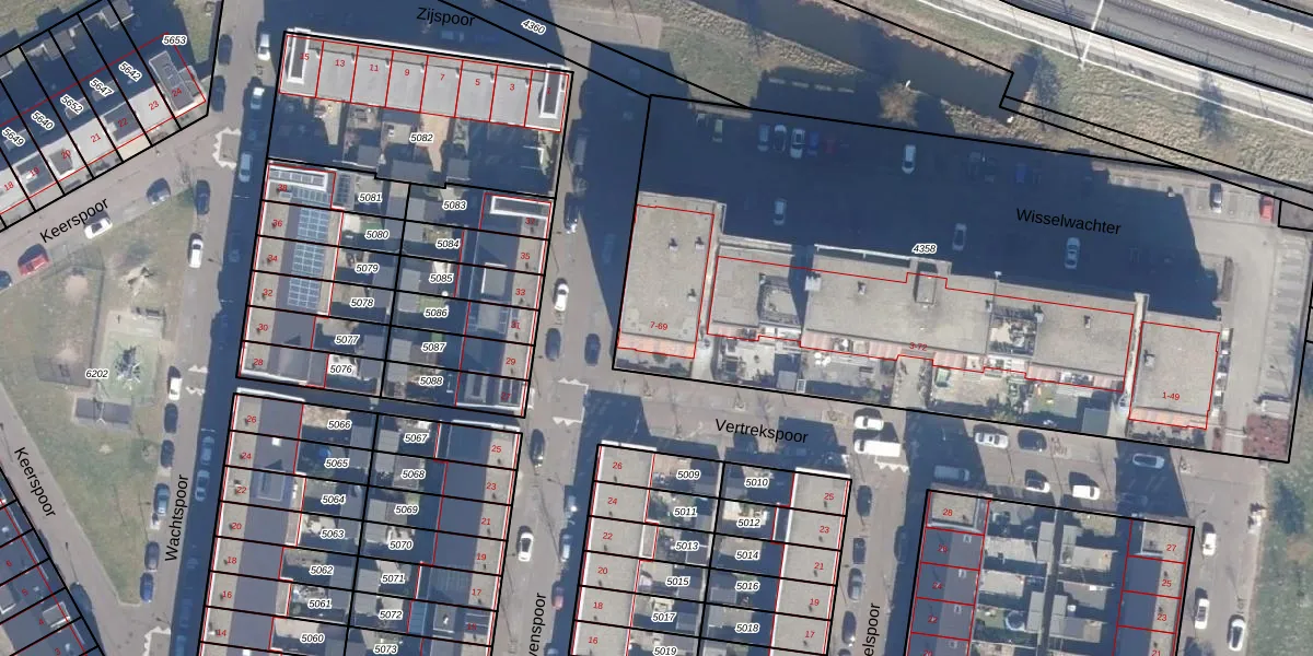 Het perceel waarop Vertrekspoor 47 staat heeft een oppervlakte van 4360 m². Dit is een zeer groot perceel. De perceeloppervlakte wordt geregistreerd door het Kadaster. Gedetailleerde informatie over de maten van dit perceel kunt u vinden in het rapport Kadastrale kaart met maatvoering van Vertrekspoor 47.