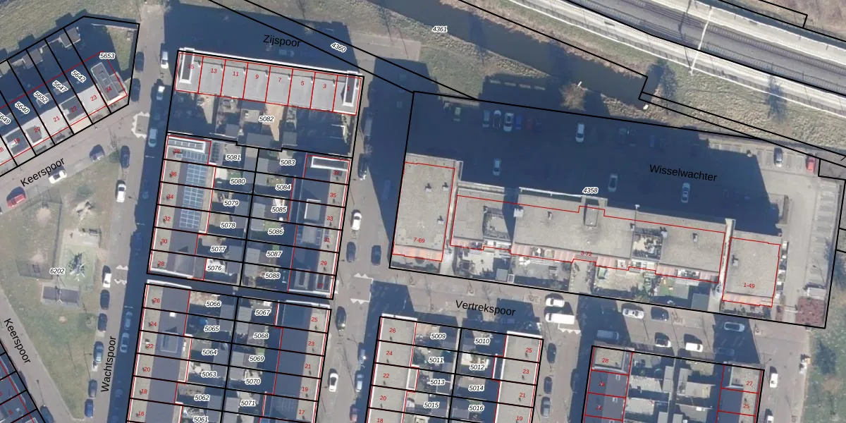 Het perceel waarop Vertrekspoor 68 staat heeft een oppervlakte van 4360 m². Dit is een zeer groot perceel. De perceeloppervlakte wordt geregistreerd door het Kadaster. Gedetailleerde informatie over de maten van dit perceel kunt u vinden in het rapport Kadastrale kaart met maatvoering van Vertrekspoor 68.