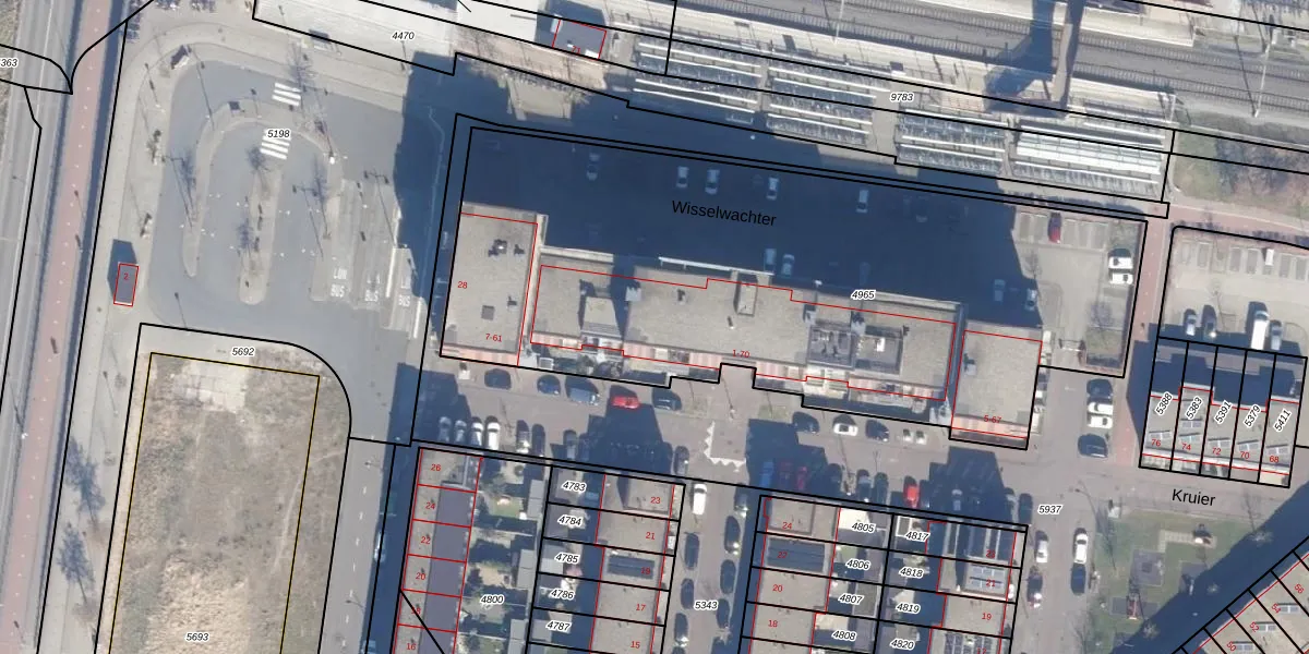 Het perceel waarop Wisselwachter 38 staat heeft een oppervlakte van 3493 m². Dit is een zeer groot perceel. De perceeloppervlakte wordt geregistreerd door het Kadaster. Gedetailleerde informatie over de maten van dit perceel kunt u vinden in het rapport Kadastrale kaart met maatvoering van Wisselwachter 38.