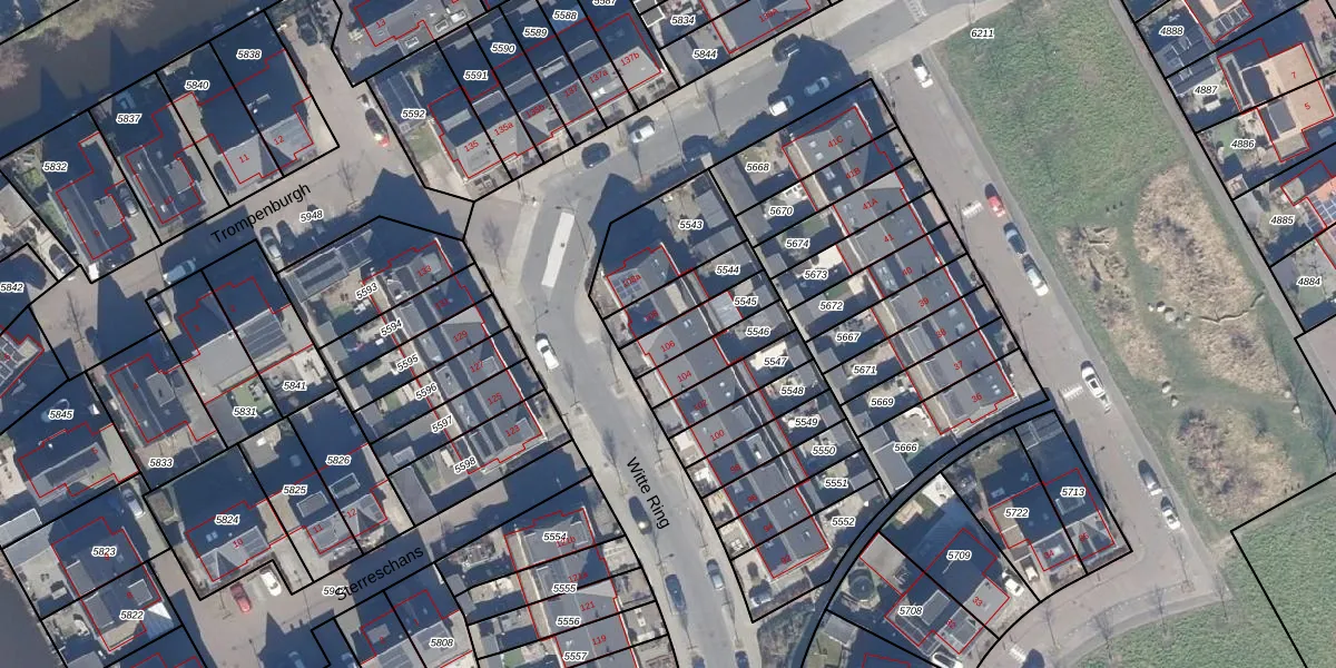 Het perceel waarop Witte Ring 106 staat heeft een oppervlakte van 127 m². Dit is een middelgroot perceel. De perceeloppervlakte wordt geregistreerd door het Kadaster. Gedetailleerde informatie over de maten van dit perceel kunt u vinden in het rapport Kadastrale kaart met maatvoering van Witte Ring 106.