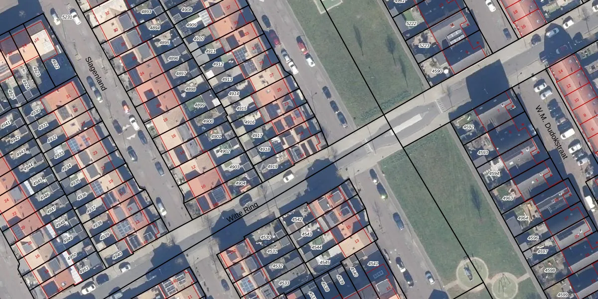 Gebruik de zoekbalk of klik op een perceel voor informatie over de adressen binnen dit perceel.