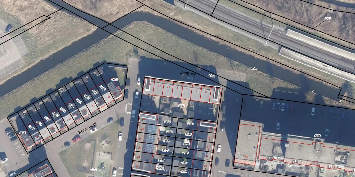 Het perceel waarop Zijspoor 9 staat heeft een oppervlakte van 872 m². Dit is een groot perceel. De perceeloppervlakte wordt geregistreerd door het Kadaster. Gedetailleerde informatie over de maten van dit perceel kunt u vinden in het rapport Kadastrale kaart met maatvoering van Zijspoor 9.
